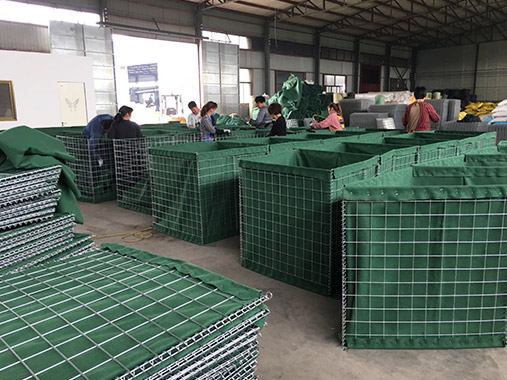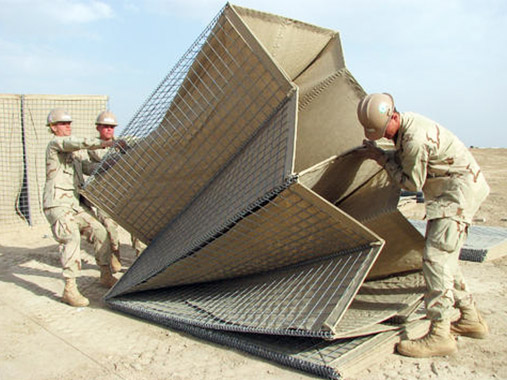 Military defense barrier wall is a prefabricated, multi-cellular system, made of zinc coated steel welded mesh and lined with non-woven geotextile. Units can be extended and joined using the provided joining pins. It is easy installed with using minimal manpower and commonly available equipment. After extended, it is filled into sand,stone,then hesco barrier like a defence wall or bunker,it is widely used for military fortification and flood control.